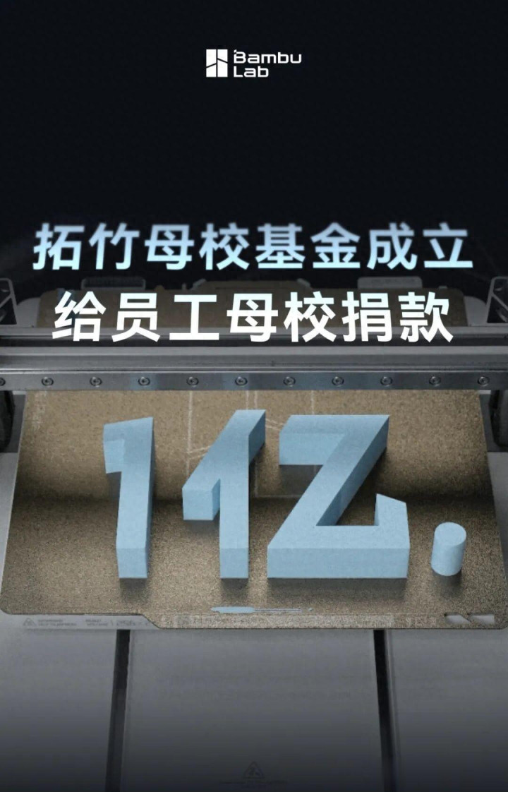第一,向母校捐赠的想法,其实在2025年中就已经确定。当时,公司年营收突破百亿的预期已经相对清晰,创始团队认为,拓竹已经到了有能力回馈母校的阶段。